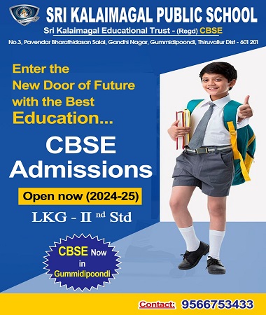 A sprawling playground hosts various sports and games, encouraging students to participate actively. Dedicated areas include a Basketball Court, Skating Rink, Handball ground, and a multipurpose playground for Hockey, Football, Cricket, and Badminton. These facilities foster a spirit of sportsmanship and camaraderie among the students. In February 2024, Sri Kalaimagal Public School celebrated its silver jubilee, marking 25 years of educational excellence. The school prides itself on achieving 100% results in government public examinations, with many students securing top scores and progressing to esteemed institutions for higher studies, including MBBS, MD, MS, BE, and other prestigious courses. Driven by a commitment to rural education, the school continues to evolve its infrastructure and educational offerings to meet the growing needs of its students, ensuring a well-rounded and enriching academic journey.